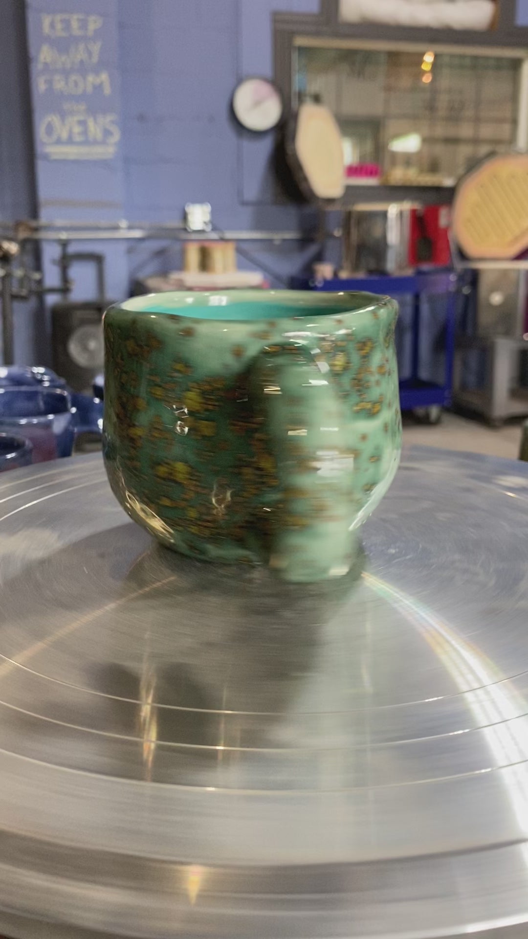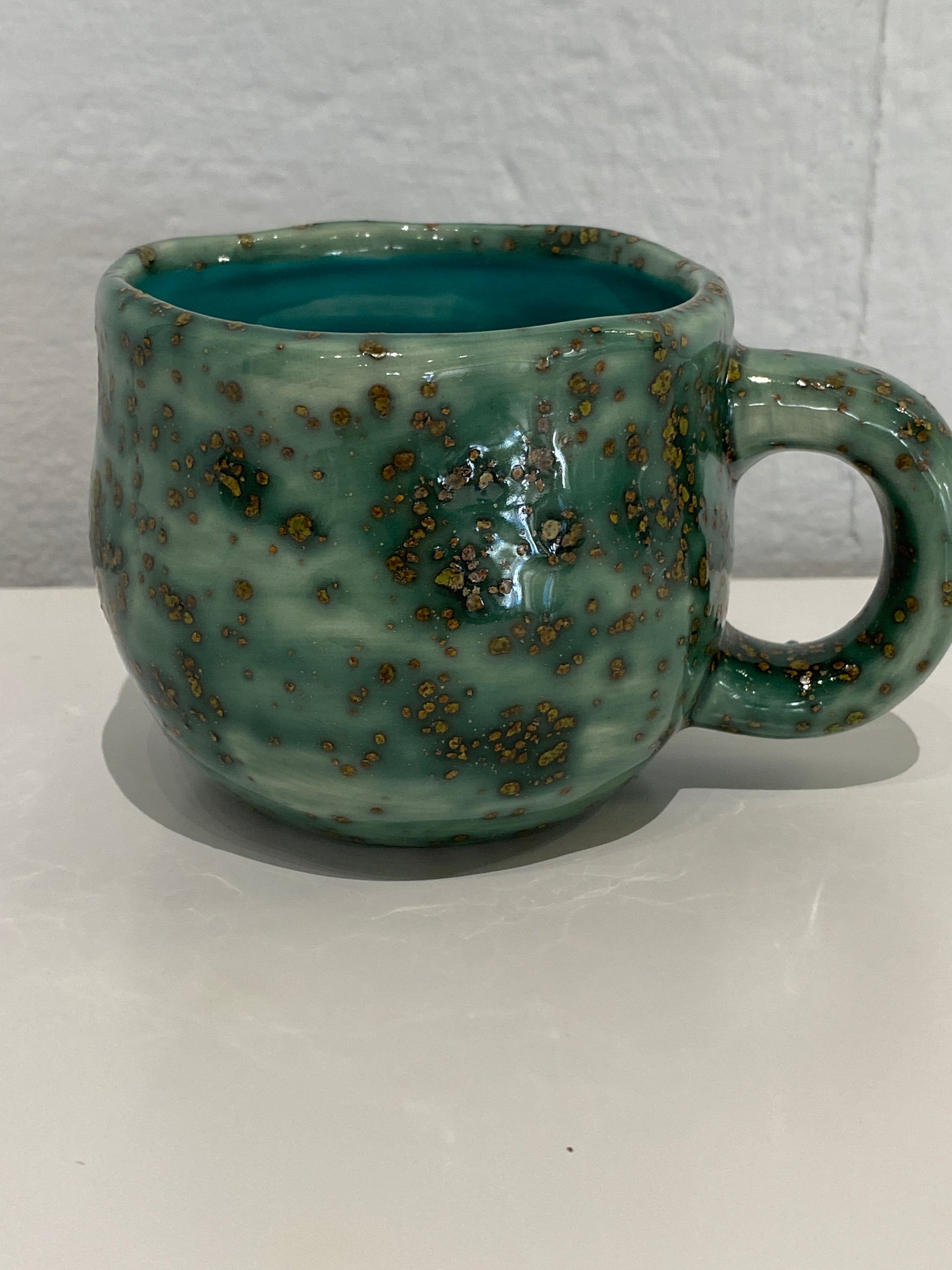 This is a nice 8oz. mug. Food Safe Glazes and Dishwasher Safe.